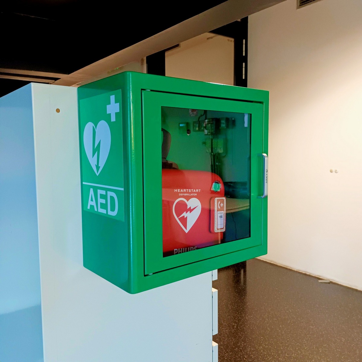 AED je v moderních veřejných budovách stále běžnější součástí vybavení a NTK není výjimkou. Včasné použití defibrilátoru může zvýšit šanci na přežití až několikanásobně. Poloha našeho přístroje je dostupná také v mobilní aplikaci Záchranka, aby jej bylo možné snadno najít i v případě nouze.